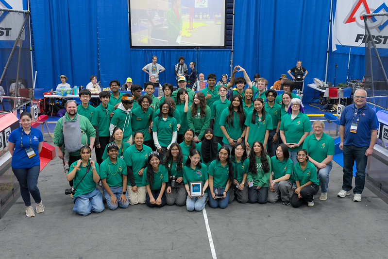 Ending the weekend with a record of 13-7-0, we had several highlights throughout the event. As the first pick of the second alliance, we played three heated final matches with our alliance partners: ArrowDynamics (Team 10079), Cast Iron Orcas (Team 5941), and the Whidbey Island Wildcats (Team 2980). Although we did not take home the win, we walked away with two awards — the finalist trophy and the Creativity Award for our compact, serpentine robot design.